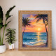 Tropical Ocean Sunset Palm Tree Watercolor Poster
