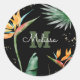 Tropical Palm Monogram Script Gold Glitzer Black Runder Aufkleber
