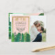 Elegante, schicke und moderne tropische Imitats am Strand druckten goldene und grüne Palmenfronten und Bananenblätter auf rosa und minzgrün Farbverlaufsklögel mit Imitaten bedruckten Goldfolien Typografie Sommer Rett-the-Date Hochzeit Postkarten. Dieses klassische und raffinierte Design ist perfekt für das trendige und stilvolle Ehepaar. Personalisieren Sie Ihre eigene Nachricht auf der Vorderseite sowie ein individuelles Monogramm auf der Rückseite. Das gesamte Foto-Druckdesign.