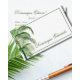 Ein eleganter Palmenbaum auf weißem Hintergrund ist die Grundlage dieses individuellen Designs. Ändern Sie die Informationen ganz einfach für sich. Einfach und elegant.