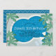 Die Einladung zum Geburtstag bietet einen hellgrauen Hintergrund mit Pool, Sonnenschirm, Liegestühlen und Palmen. Die Rückseite weist einen blauen Hintergrund mit weißen Wellenmustern auf. Personalisieren Sie es für Ihre Bedürfnisse. In meinem Geschäft finden Sie passende Produkte.