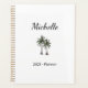 Personalisierter tropischer Strandplaner mit einer farbenfrohen, handgezeichneten Abbildung von Palmen. Mit schwarzen Typografie-Schriftzeichen passen Sie Ihren eigenen Namen an. Eine moderne berufliche Art, organisiert bleibe.