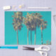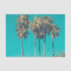 Gewebepapier mit einem schönen Foto. Große Palmen mit langen schmalen Stämmen vor einem schönen grünen Himmel. Retro-Farbschema. Entspannen und kühlen.
