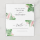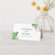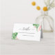 Tropisch grüne Palmen Blätter und Blush Pink Blume Wasserfarbe mit Imitate Rose Gold Foil Geometric Form Frühjahr oder Sommer Hochzeit Platzkarten - beinhaltet schöne und elegante Drehtypografie mit modernen tropischen botanischen Blume und Grün für die besondere Hochzeitstag-Feier.