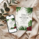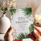 Tropische Romantik trifft auf wilden Stil! Feiern Sie die Zukunft Mr. & Mrs. mit dieser kühnen und schönen tropischen Verlobung Einladung. Mit seinen üppigen Blätter aus grüner Palme, der beeindruckenden Blume aus rotem Hibiskus und den sanften Leopardruckakzenten ist es die perfekte Mischung aus exotischem Flair und moderner Verglasung. Bequem mit Ihren Party-Details bearbeiten - ideal für Strandfeiern, Safari oder Sommerfeiern.