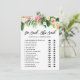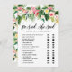 Er sagte, sie sagte: Rate mal, wer es zuerst gesagt hat! Ein lustiges tropisches Brautparty-Erlebnis mit tropischen Blume und Blätter in Aquarellen und moderner Kalligraphie. Personalisieren durch Hinzufügen von Namen, Ereignis und Datum. Diese Tropische Bride- oder Groom-Spielkarte eignet sich ideal für Brautpartys und Polterabende im Sommer.