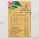 Diese farbenfrohe tropische Blumen und tropische Farbe Hintergrund Brautdusche Einladung. Das Design besticht durch ein elegantes Bouquet mit klassischen Strandfarben und Blume, darunter rosafarbener Hibiskus, orangefarbene und blaue Paradiesvögel, grüne Vegetation und dunkelgrünes Palmenblatt.