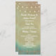 Tropical Starfish + Beach Seashell Wedding Programmes - sont dotés de lampes à cordes, de coquillages en or imprimé et d'étoiles de mer avec un bel arrière - plan sur le thème de la plage dans les tons bleu, vert, bronzé et des touches d'autres couleurs. Voir la collection complète de correspondances ci-dessous dans cette conception.
