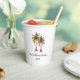 Tropische Sommer schwimmen Party Tassen, mit einer Palmen Illustration Design und anpassbare Schrift. Eine großartige Ergänzung zu Ihrem Party mit einem Picknick am Strand.