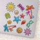 Sommerzeit Scrapbook Aufkleber. Jeder Aufkleber ist wie das Objekt geformt und beinhaltet eine Sonne, Palmen, Sterne / Seesterne, Muscheln, Flip Flops, ein Schiff Rad und Sonnenbrille. Helle und farbenfrohe Designs eignen sich hervorragend für die Erstellung einer Scrapbook-Seite für ein Sommergeburtstag oder ein Party im Pool. Gestaltete Aufkleber machen auch Spaß, um den Party-Gast als Vorzug zu geben oder Umschläge und Verpackungen zu dekorieren. Die Größe der Aufkleber entspricht der Größe des Bogens.