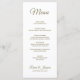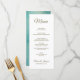 Dieses tropische Veranstaltungsmenü, das sich mit meiner Hochzeitskollektion im Tropischen Paradies abstimmen soll, enthält die Namen der Braut und des Bräutigams in elegantem goldenen Handschrift, das Hochzeitsdatum, Ihre Vorspeisen, Vorspeisen und Desserts auf einem sauberen und schlichten weißen Hintergrund. Die Rückseite ist ein handbemalter, wasserfarbener Strand und Palmen Druck. Einfach mit der Designvorlage personalisieren - einfach den Beispieltext durch eigene Menüinformationen ersetzen. Wenn Sie feststellen, dass Sie die Größe des Schriftartes anpassen oder etwas neu positionieren müssen, klicken Sie auf "Anpassen".