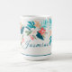 Sip in summer style with this coastal-inspired floral mug, featuring a vibrant wraparound arrangement of watercolor tropical blossoms, lush greenery, and soft citrus tones. A clean white background and deep teal stripe along the base create a bright, modern look that feels fresh and uplifting. Personalize the front for a thoughtful gift or a charming addition to your own seasonal kitchen. Perfect for morning coffee on the patio, beach house mornings, summer entertaining, or adding a warm splash of color to your day. This mug pairs beautifully with the matching towels, napkins, tray, placemats, and kitchen accessories from the Summer Collection for a cohesive, sun-washed coastal vibe.