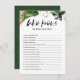 Qui sait que la mariée est la meilleure ? Ajoutez cette carte amusante et ludique à votre douche nuptiale. Il présente des feuilles tropicaux aux accents tropicaux faux feuille d'or. Personnalisez en ajoutant un nom et un événement au verso de la carte. Cette carte de jeux pour deviner la nage verte est parfaite pour les douches à thème estivales et tropicales.