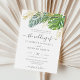 Diese elegante Hochzeitseinladung besticht durch ein Aquarelldesign üppiger tropischer Blätter in Grüntönen. Die Blätter sind mit Imitat Goldeffekt, die eine Touch von Luxus. Der Text ist in einem stylischen schwarzen Kalligraphieskript-Schriftart gedruckt, der vor dem Hintergrund leicht zu lesen ist. Diese Einladung ist ideal für eine Hochzeit oder eine Hochzeit in Urlaubsort in einem tropischen Ort.