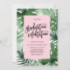 Ce design tropical d'invitation à la fête de remise de diplômes comporte des palmiers d'aquarelle d'été amusants jumelés à un arrière - plan rose flirtant et une police brossée moderne.