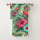 L'ensemble de serviettes de bain Bright Tropics ajoute une touche vibrante et rafraîchissante à votre salle de bains. Avec ses teintes tropicales audacieuses et ses motifs botaniques luxuriants, cet ensemble apporte l'énergie d'un paradis tropical dans votre espace. Fabriqué à partir de matériaux absorbants de haute qualité, il comprend une serviette de bain, serviette et linge pour une expérience douce et luxueuse. Conçu à partir d'une image numériquement édité de l'IA, cet ensemble de serviettes allie beauté tropicale exotique et art numérique moderne, ce qui en fait un ajout unique et attrayant à votre décor maison.