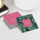 Elegante Visitenkarten mit einer schicken tropischen Inselatmosphäre bieten einen Hintergrund von lebhaften grünen Dschungeldächern botanischen Blätter. Personalisieren Sie die Vorderseite mit Ihrem Namen oder Firmennamen, und fügen Sie Ihre vollständigen Kontaktdaten auf der Rückseite in modernen weißen Buchstaben auf einem hellrosa Hintergrund hinzu.