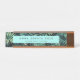 Das Tropical Chic Schreibtisch-Typenschild enthält zwei Zeilen Text für Ihren Namen und Titel oder Ihren Firmennamen. Auf einem kontrastierenden, hellen türkisfarbenen Aqua-Rechteck-Set mit modernen weißen Schriftzeichen auf einem dramatischen Hintergrund von Dschungelbotanischen Blätter und Blattwerk.