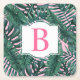 Das tropische Untersetzer im gürtelartigen Stil ist mit einer grünen Palme und einem Monsterblattmuster aus Schichtenblättern mit pastellrosa Hintergrund gestaltet. Der weiße Zierrahmen hat einen Monogramm-Brief in leuchtend heißem Rosa (kann angepasst werden), den Sie mit Ihrem Nachnamen initialisieren können.