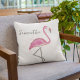 Dieses Design besticht durch ein niedliches, typografisches Kissen mit einem tropischen, sommerlichen, hawaiianischen Thema und einem Aquarellpinken Flamingo-Vogel, personalisiert in einfachen schwarzen Kalligrafien.