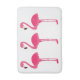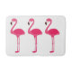 Diese lustige Badematte verfügt über drei niedliche rosa Flamingos auf einem massiven weißen Hintergrund.