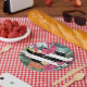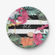 Tropische Blume Blätter Schwarz-weiße Streifen Pappteller