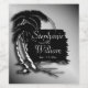 Schwingende Palmen auf der Insel mit Namen und Datum. Ideal für eine Hochzeit in Urlaubsort am Strand