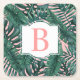 Das tropische Untersetzer im gürtelartigen Stil ist mit einer grünen Palme und einem Monsterblattmuster aus Schichtenblättern mit pastellfarbenem Hintergrund gestaltet. Der weiße Zierrahmen hat einen Monogramm-Brief in leuchtend korallenrosa (kann angepasst werden), den Sie mit Ihrem Vornamen personalisieren können.