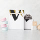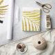 Schönes Palmenblatt aus Goldfolie mit massivem weißem Hintergrund und mit Monogramm Initial, das nach Ihren Wünschen bearbeitet und angepasst werden kann.
