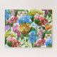 Dieses tropische Blumenmuster zeigt eine Vielzahl von farbenfrohen exotischen tropischen Orchideen in Blau, Rot, Weiß, Gelb, Orange, Rosa und lila.