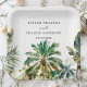 Diese elegante und schöne Hochzeitsplatte in Aquarelltönen mit tropischen Palmen. Der Text kombiniert handgeschriebene Skripte mit serifenlosen Schriftart für ein stilvolles und modernes Design. Dies ist ideal für einen Sommerstrand oder eine tropische Hochzeit in Urlaubsort.