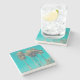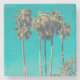 Ein Untersetzer aus Stein mit einem schönen Foto. Große Palmen mit langen schmalen Stämmen vor einem schönen grünen Himmel. Retro-Farbschema. Entspannen und kühlen.