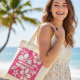 Mit dieser tropisch rosa Strand-Blume 🌞 die Tasche 🌸 🌴 sonnen 👜. Ideal für 🛍️, 🏖️ oder als stilvolles Geschenk 🎁. Der bearbeitbare Text lasse Ihnen, einen Namen, einen Speicherort oder einen ✍️ hinzuzufügen.