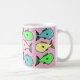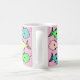 Eine farbenfrohe Abbildung der Fische schmückt diese Tasse. Eine Geschenkidee für jeden, der tropische Fische behalte. tropisches Fischdesign. Eine ansprechende Tasse, die mit einem farbenfrohen Fisch dekoriert ist. Geschenkidee für einen tropischen Fischbesitzer. Rosa Hintergrund.