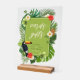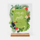 Ein Acryl-Hochzeitszeichen "Karten und Geschenke" mit einem grünen Rahmen im Frühjahr und einem Rahmen mit einem kühnen Toukan zwischen Aquarellblüten und Palmen-Blätter. Dieses tropische Hochzeitszeichen-Design ist perfekt für Sommer-, Strand- und tropische Hochzeiten, Geburtstage und andere besondere Veranstaltungen. Suchen Sie die ID577, um passende Produkte anzuzeigen.