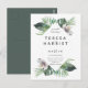 Tropische Vegetation rustikale Einladung, mit Palmen, tropische Blumen in einem subtilen Aquarellbild. Sommerhochzeit, rustikale Hochzeit oder sogar eine Gartenhochzeit mit einem tropischen Thema.