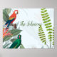 Tropische Vögel (Papageien), umgeben von Blättern und Blume, darunter Kalathea und Paradies aus großen Blättern. Das Design ist ausgezeichnet für Naturliebhaber, Karibik- und Tropenliebhaber, für die Details der Küste, für die Details der Insel und für Tierliebhaber. Passen Sie auf Ihre Wünsche ein.