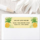 Tropisch inspirierte Adressetiketten mit gelbem Streifen-Hintergrund mit grünen Palmfronten und stilisierten Ananas.
