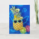 Blume und Sonnenschirme mit frischen Ananas auf einem Strandtuch.