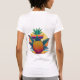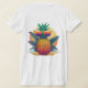 Dieses lebendige T - Shirt-Design besticht durch einen stilisierten Ananas, der vor dem Hintergrund eines tropischen Sonnenuntergangs eine Sonnenbrille trägt. Die Ananas ist mit einem strukturierten Muster detailliert, und die Sonnenbrille reflektiert die lebendigen Farben des Sonnenuntergangs. Palmfronten umrahmen die unteren Seiten des Bildes und verstärken sein tropisches Thema.