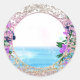 Tropischer Aufkleber mit glitzerndem Licht im Wasser und einem glitzernden Kranz mit Lavendel-Blume