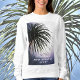 Eine schöne windblasen Palme an einem stürmischen Himmel inspirierte dieses dramatische T-Shirt-Design. Schwarz, Indigo, lila und grau, der Wind weht um eine tropische Palme herum. Windblown sah noch nie so gut aus! Personalisieren Sie diesen schicken tropischen T - Shirt mit Ihrem eigenen Text, wenn Sie möchten. Dieses Bild ist eine originelle Naturfotografie von JLW_FOTOGRAFIE