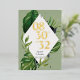 Moderne und informelle Hochzeit Save The Date-Karte mit einer schönen Abbildung der grünen tropischen Dschungel-Blätter. Fügen Sie einfach Ihr Zeremoniedatum in echter Goldfolie hinzu, und die Namen von Braut und Bräutigam in dunkelgrauen Schriftart auf einem geometrisch weißen Hintergrund. Diese Save the Date Karte ist Teil der Sammlung "Tropischer Jungle Wedding" mit vielen koordinierenden Gegenständen, um eine einzigartige Hochzeitssuite zu schaffen.