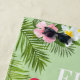 Dieses personalisierte Badetuch im Sommer ist mit einem hübschen rosa Flamingo, üppigen tropischen Blätter aus Palmen, Blume aus Hibiskus und weißen Streifen an der Küste ausgestattet. Lebhafte Farben sind Rosa, Magenta, Gelb, Minze und Grün. Personalisieren Sie den benutzerdefinierten Text mit einem Namen.