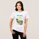 Tropischer Junggeselinnen-Abschied T - Shirt mit Platz für einen QR-Code. Das Party der Bride mit trinken QR-Code. Ein mit Zucker gerippter, blauer Margarita mit Limonen, und Bananenstauden Blätter ist das Design. Eine gelbe Hibiskus-Blume und Muscheln tragen zum tropischen Design bei. Die geometrisch blauen und grünen Linien bilden zwei Textzeilen. "Braut" ist in fett-aqua-blauer Text. Fügen Sie auch Formulierungen wie "Danke, dass Sie mir ein Getränk zu kaufen", um Party Gäste zu bewegen, für die Ehre zu spritzen. Laden Sie das QR-Code-Symbol hoch, wo die Geldspende hingehen wird, und stellen Sie sicher, dass der Karo funktioniert.