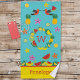 Hellgelbe Bananen, saftige rote Wassermelonen, Ananas, Blume und Rote Vögel schmücken dieses niedliche tropische Handtuch. Fügen Sie unten Ihren Namen, Familiennamen, Bootsnamen oder Clubnamen hinzu und fügen Sie Ihre Initialen im mittleren Kranz für ein Monogramm-Design hinzu, das für Ihre Strand- und Poolzeit personalisiert ist!