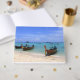 Langes Boot und tropischer Sandstrand in der Andamanensee, Thailand