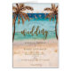 Eine schöne gefaltete Kartenhochzeitseinladung mit Palmen eines tropischen Strandes und entwerfen, mit Schnurlichtern. Fertigen Sie die Front besonders an und addieren Sie Ihre eigene Mitteilung nach innen. Verfügbar auf vielen anderen Produkten in meinem Geschäft in diesem Strandentwurf.