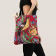 Dieses Design wurde aus einem antiken europäischen Chinoiserie Folk Art Töpferwerk angepasst. Schwirbelnde Blätter und stilisierte Blume in Blau, Grün, Gelb und Aprikose verbinden sich mit einem exotischen Paradies mit einem langen Schwanz und bunten Federn. Der Hintergrund ist orientalisch rot. Einzigartig und perfekt für jeden Anlass! Ein helles und skurriles Weihnachts-/Winterurlaubsgeschenk auch. Artwork & Design von Tuzi Williams.