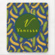 Tropisches Banana Blue Leaf Monogram Script Mousepad
